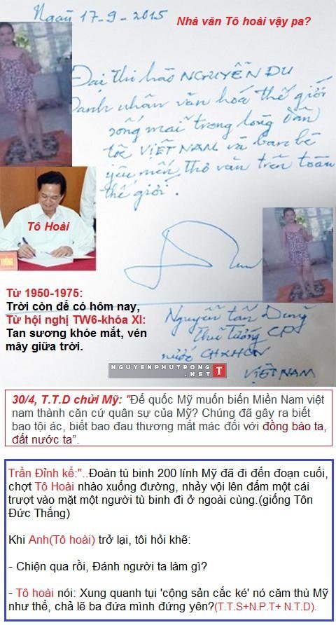 ...Cho đến khi thống nhất nước nhà, ba mẹ tôi không còn nữa, đã hy sinh cho độc lập dân tộc song họ hàng tôi vẫn vui lòng bởi vì tôi đã thay mặt gia đình và các cô chú trong cơ quan cũng như bạn bè tôi được vinh dự gặp Bác Hồ. Nhưng có ai biết được rằng sau cái gọi là vinh danh gặp bác Hồ là chuyện gì xảy ra đâu. Kể cả chồng tôi khi hỏi tới trinh tiết của tôi, tôi cũng không dám nói vì anh ấy là một đảng viên cao cấp là một người lãnh đạo của tỉnh Quảng Nam - Đà Nẵng. Tôi chỉ nói là khi đi công tác tôi bị bọn ngụy quân bắt tôi và hãm hiếp tôi, chứ làm sao tôi dám nói tôi bị hãm hiếp lúc mới 15 tuổỉ và bị hãm hiếp ngay phủ chủ tịch và chính là "Bác Hồ" hãm hiếp tôi cho chồng tôi nghe...